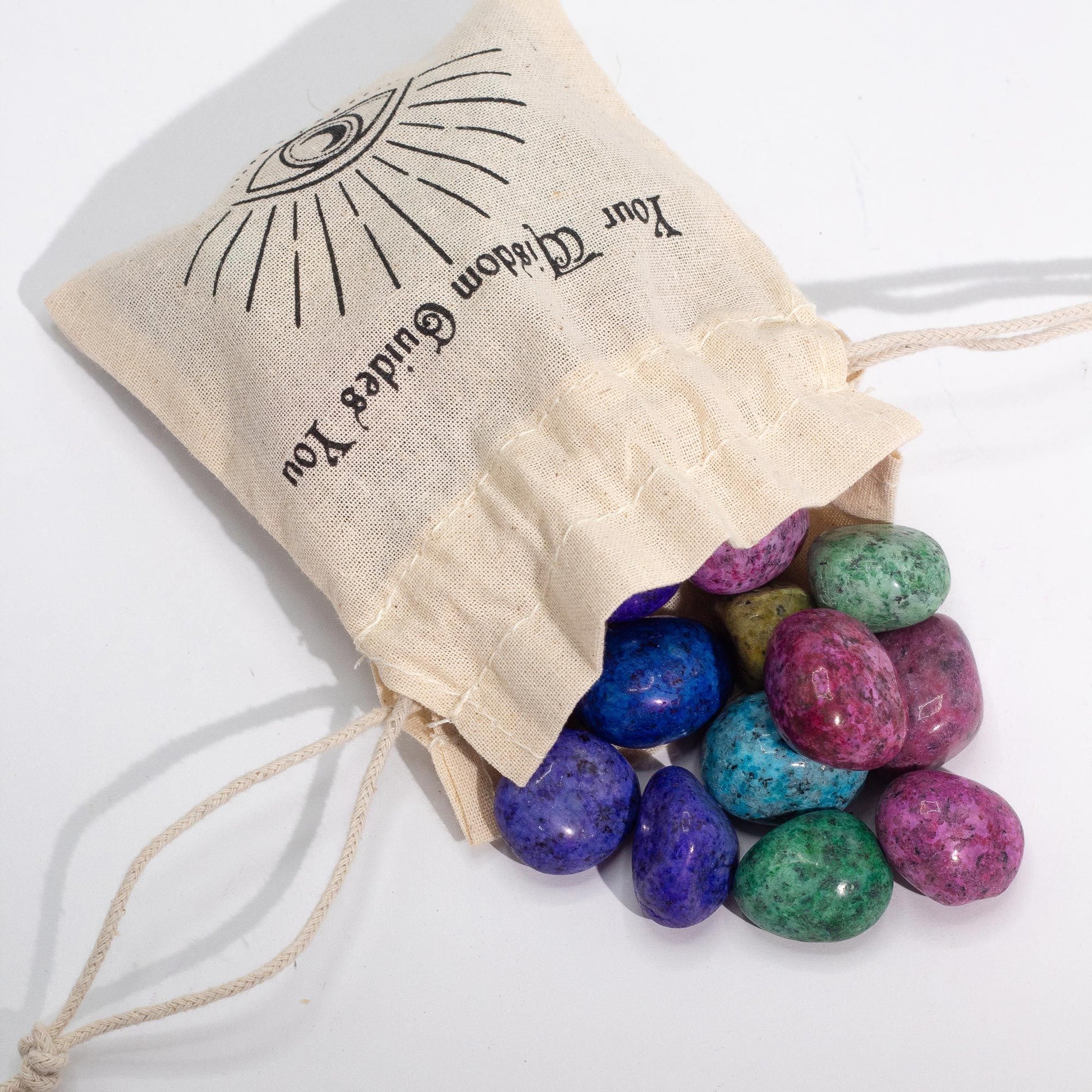Smooth, rounded, and full of playful charm, these stones are ideal for decorative displays, crafting, or spiritual use. The unique combination of earthy patterns and bright hues makes this mix a lively addition to any crystal bowl, or gift set.