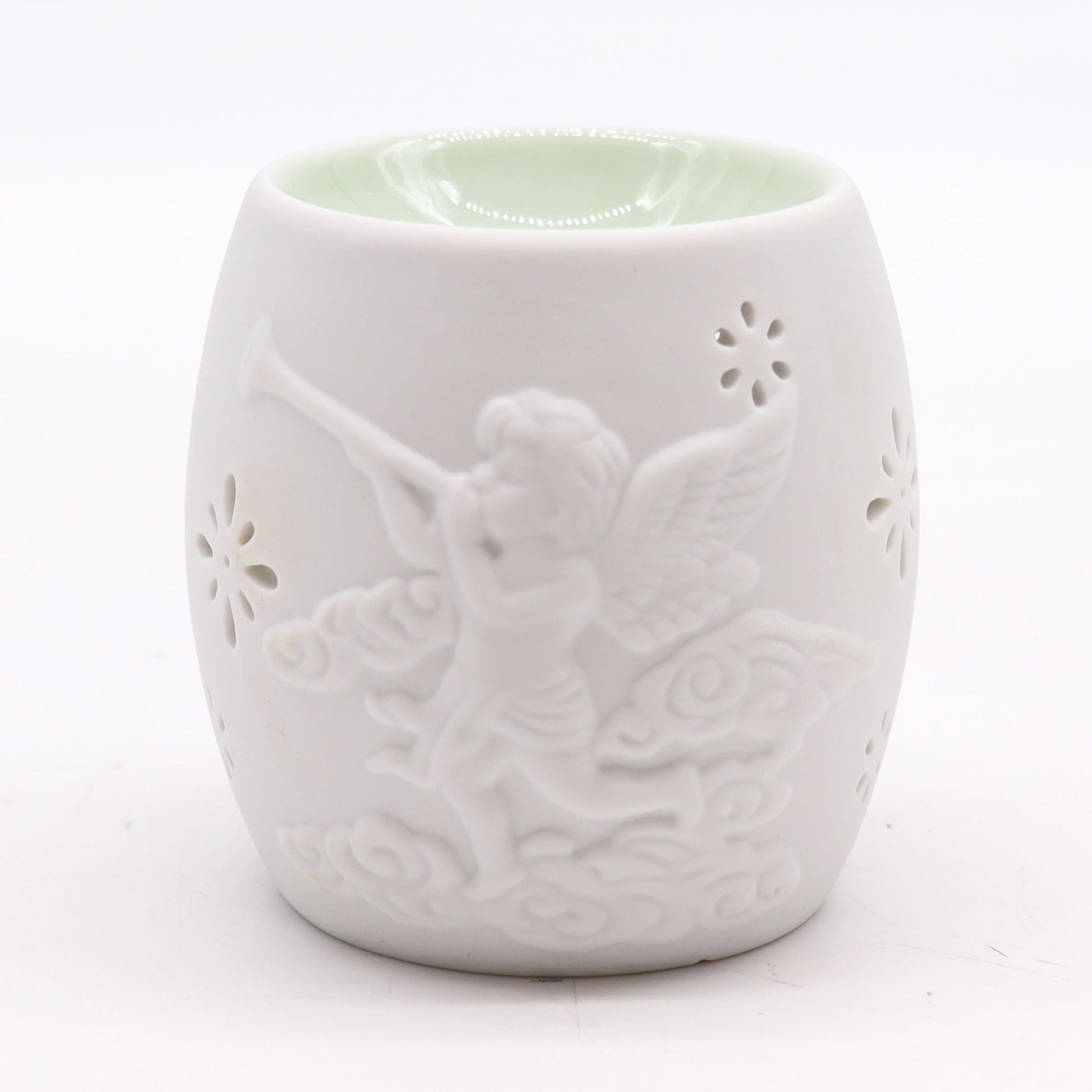 White Ceramic Cherubs Oil Burners are great for use with Fragrance Oils and Wax Melts. It also makes a very attractive decoration in any room, due to the beautiful Cherubs design.