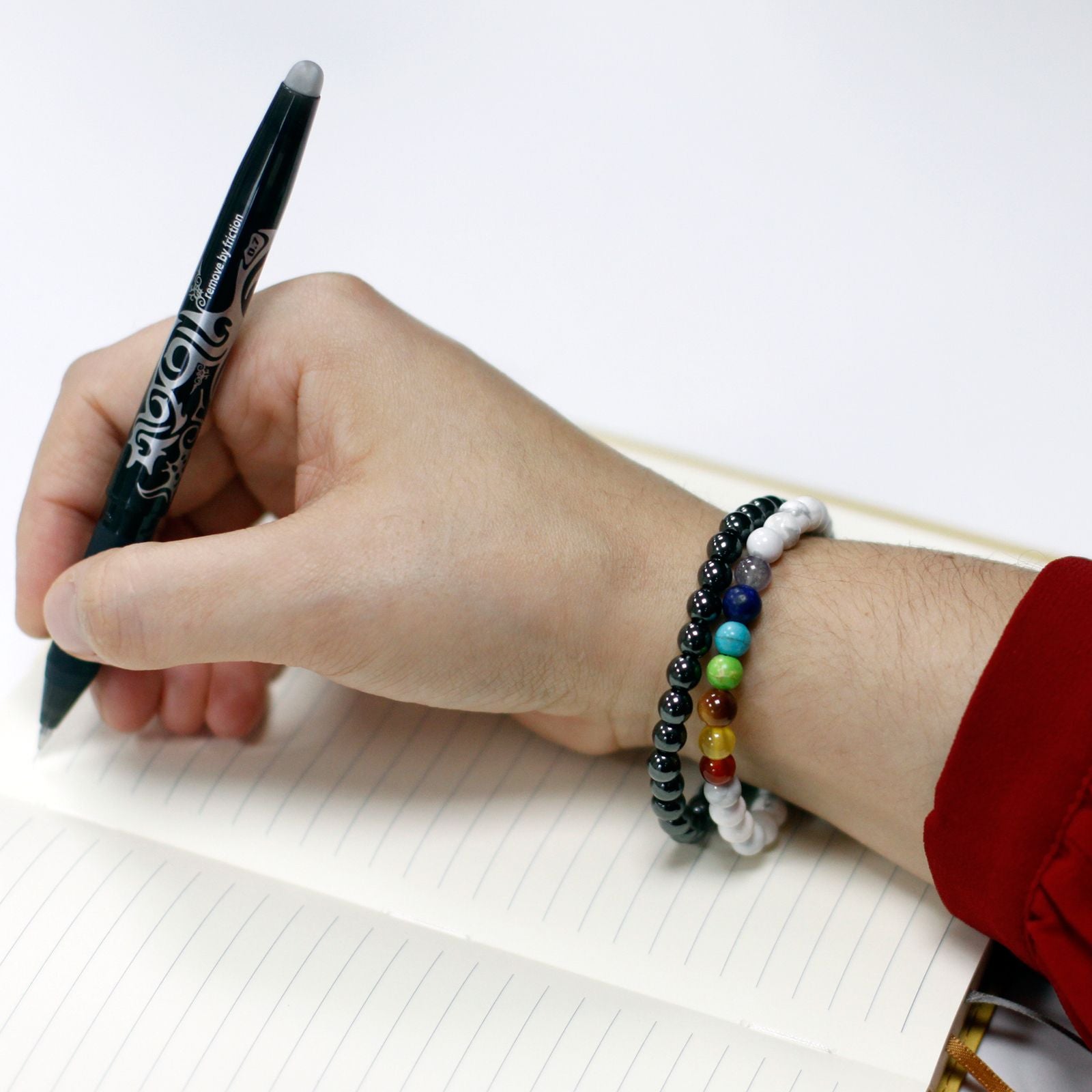 All of the bracelets are secured together with strong elastic, so it will stretch to accommodate any size of wrist.