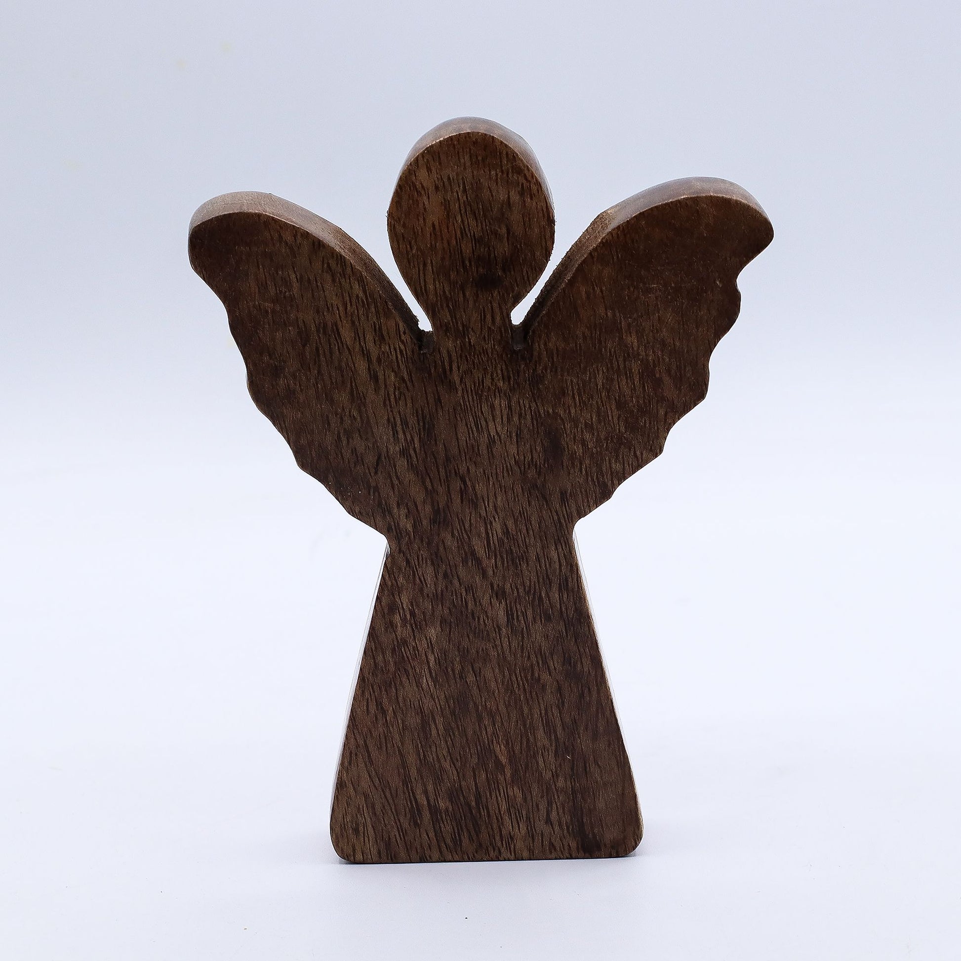 Hand-carved from natural mango wood and finished with shimmering gold wings, this elegant angel brings a sense of peace and timeless beauty to any home. A meaningful gift or a graceful piece to cherish for yourself.