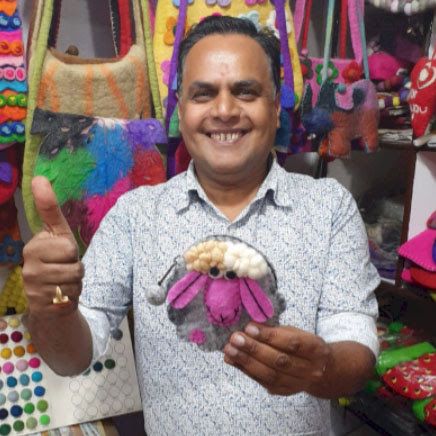 Natural Felt Zipper Pouch (asst) - Happy Sheep