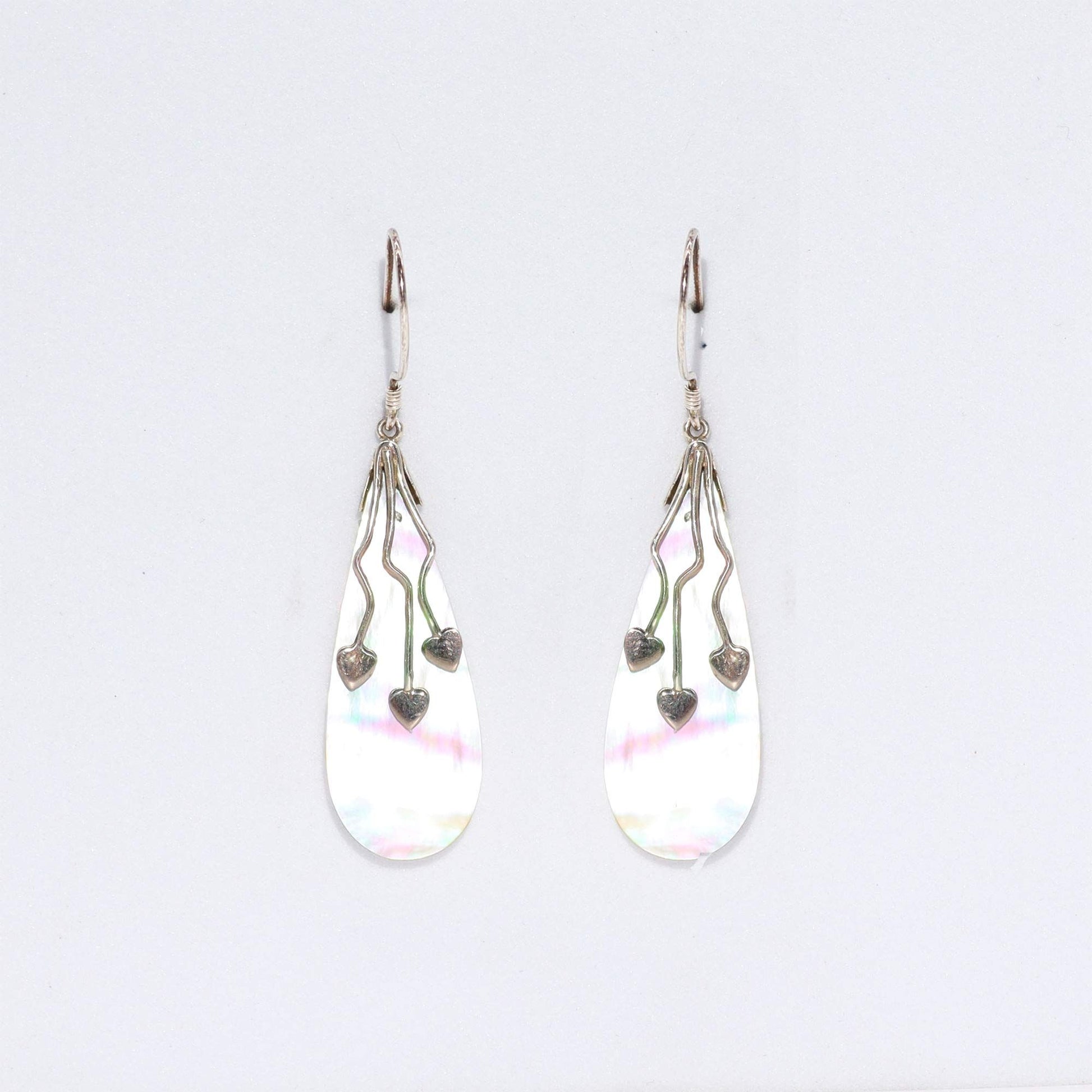 Shell & Silver Earrings - Three Hearts - MOP, Shelf & Silver Earrings -