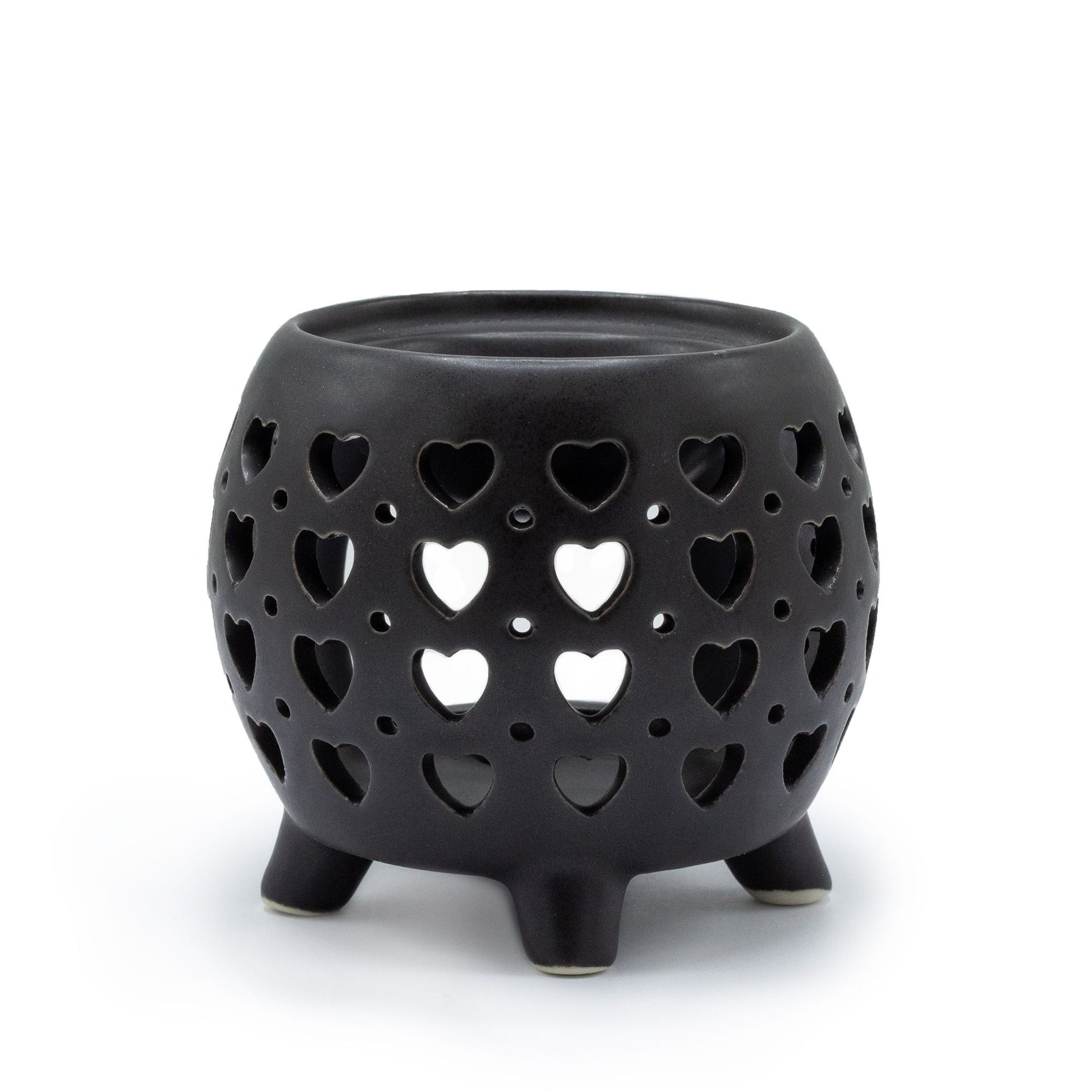 Squat Pot Oil Burner Multi Hearts - Matt Black